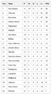 Berikut Klasemen Liga Spanyol 2025/2026 (Pekan ke-11):